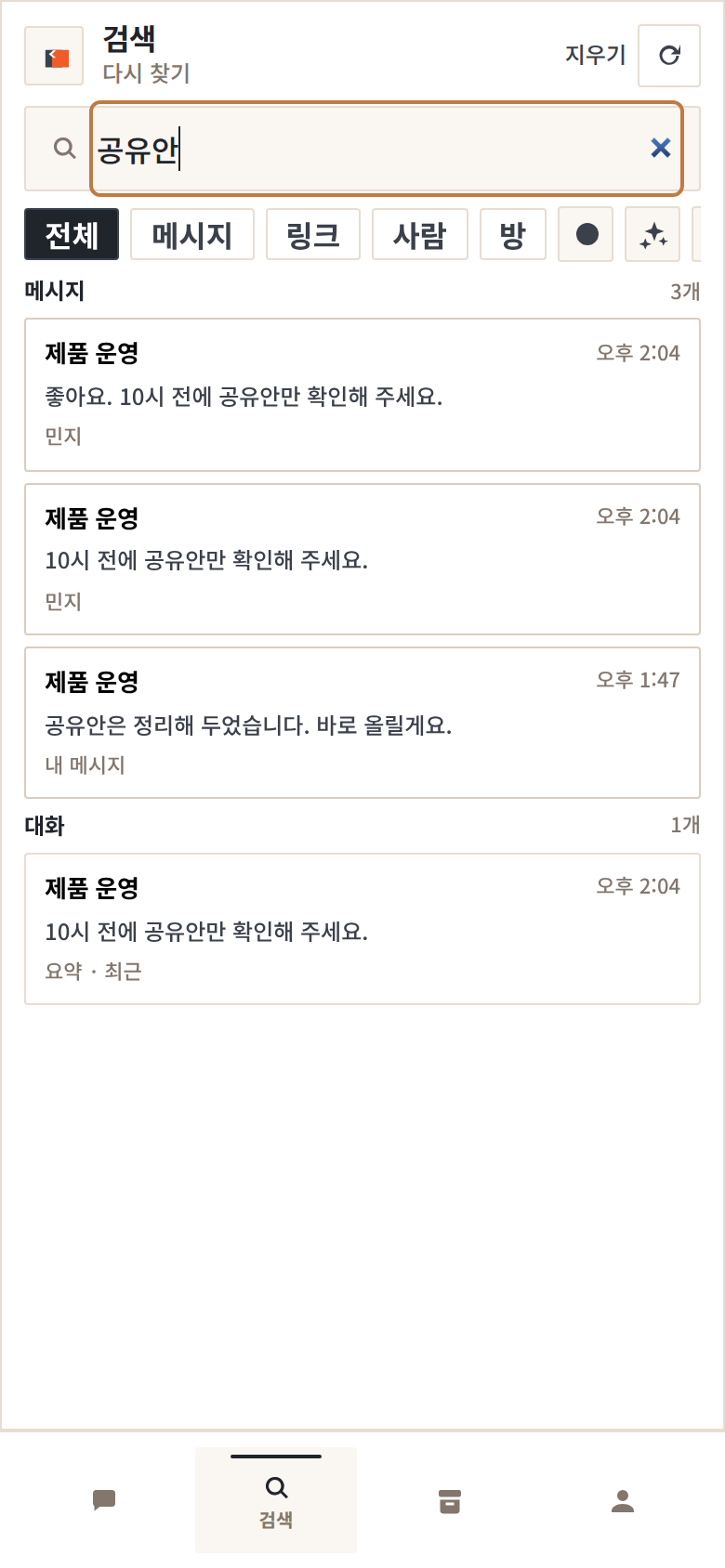 - 개인 대화와 업무형 소통 모두에서 검색, 복귀, 정리, 후속조치가 더 짧아져야 합니다.